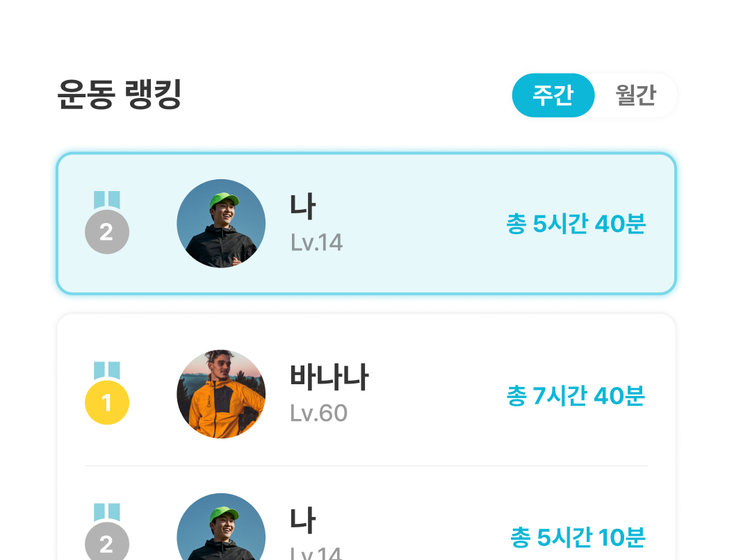 친구·팀과 경쟁하며 게임처럼 운동해보세요!
